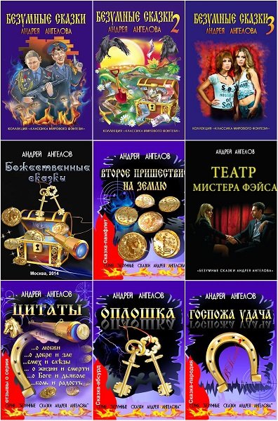 Сказки Андрея Ангелова (13 книг) — это динамичные сюжеты, пронизанные чёрным юмором, глубокой лирикой и старым добрым абсурдом. Несмотря на занимательность и легкий слог, автор поднимает философские «вечные вопросы» о добре и зле, о любви и ненависти, о жизни и смерти. Здесь нет заумной нудности, а есть юмор и цинизм, любовь и ненависть, лихие приключения в реалиях современности… Сказки вовлекают в мир, так похожий на наш, и то же время непохожий. Сказки рассчитаны на широкий круг читателей.
